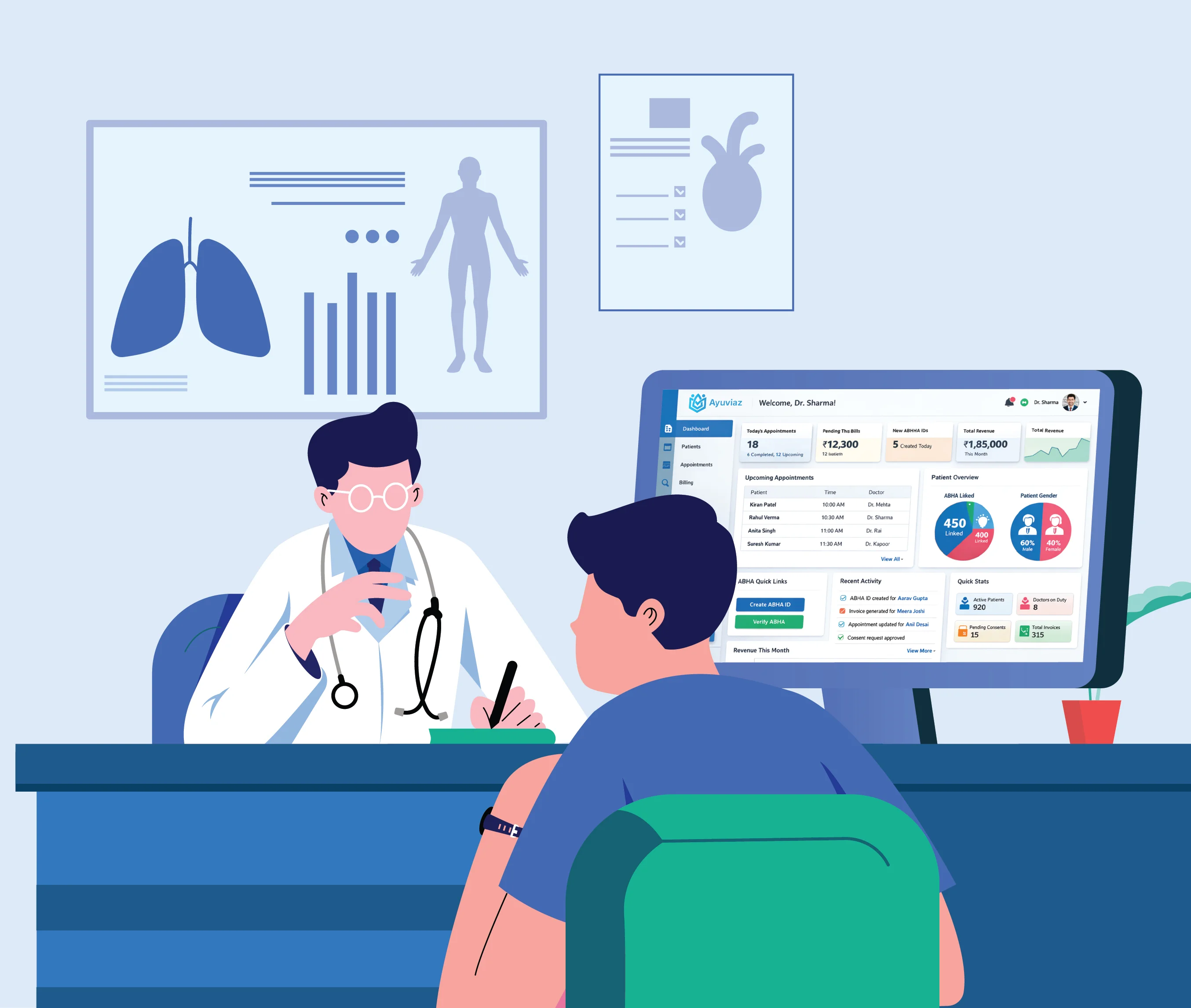 Ayuviaz is built to support the Ayushman Bharat Digital Mission without adding extra steps for clinics.